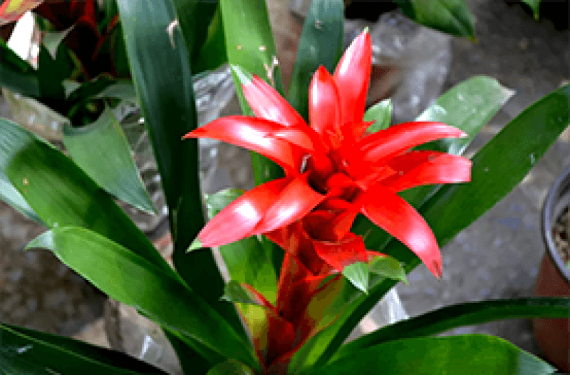 ● Guzmania lingulata: Parlak kırmızı yaprakları ve etkileyici çiçekleri ile bilinir.