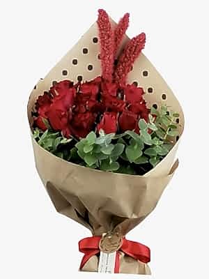 Floral Designers ekibimizin özenle konseptini hazırladığı, harika çiçeklerden bir derlemedir.Kırmızı güllerin(15adet), okaliptusle harmanlandığı kuru çiçek ile tasarlanan özel çiçek buketidir.